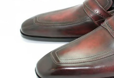 パティーヌ仕上げ(Patina Finish) とは、職人が手作業で革にグラデーションや深みのある色合いを施す染色技法のことです。フランスの高級靴ブランド「ベルルッティ(Berluti)」が広めたことで有名になりました。